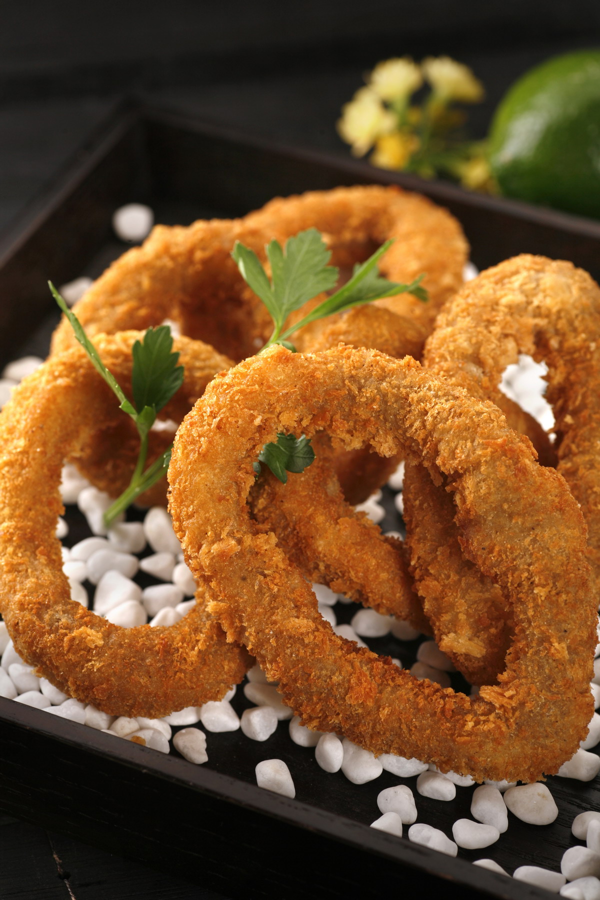 采用帶魚糜及魷魚制成軟嫩Q彈的魷魚圈 經(jīng)油炸后酥脆鮮香 搭配各種醬汁口味更佳