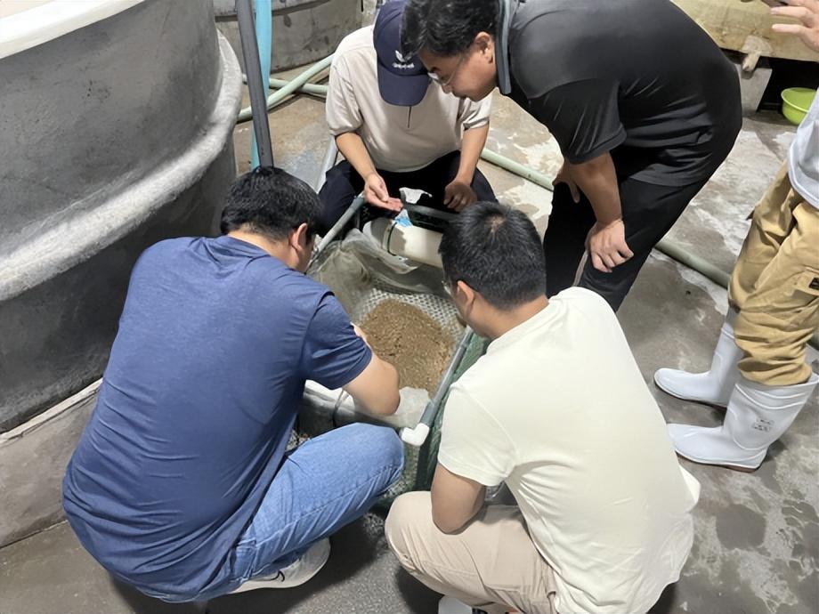 紫石房蛤俗名大蛤、天鵝蛋,是一種冷水性大型經濟貝類,也是大連區(qū)域重要的經濟土著品種之一。其肉質肥大,味道鮮美,是蛤類上品。因長期高強度采捕,導致大連周邊海域紫石房蛤呈現資源量下降、小型化等特點。李明介紹,國家貝類產業(yè)技術體系獐子島綜合試驗站于2022年開始聯合國家貝類產業(yè)技術體系灘涂養(yǎng)殖崗位霍忠明團隊對紫石房蛤苗種規(guī)?;庇夹g進行攻關,先后開展了多項繁殖生物學等技術研究,經過兩年努力成功突破其育苗技術,今年首次培育出苗種220余萬枚,并于9月通過了遼寧省海洋水產科學研究院、大連市海洋發(fā)展事務服務中心、長??h海洋發(fā)展局組成的專家組驗收,填補了我國紫石房蛤規(guī)?;斯し庇夹g的空白。