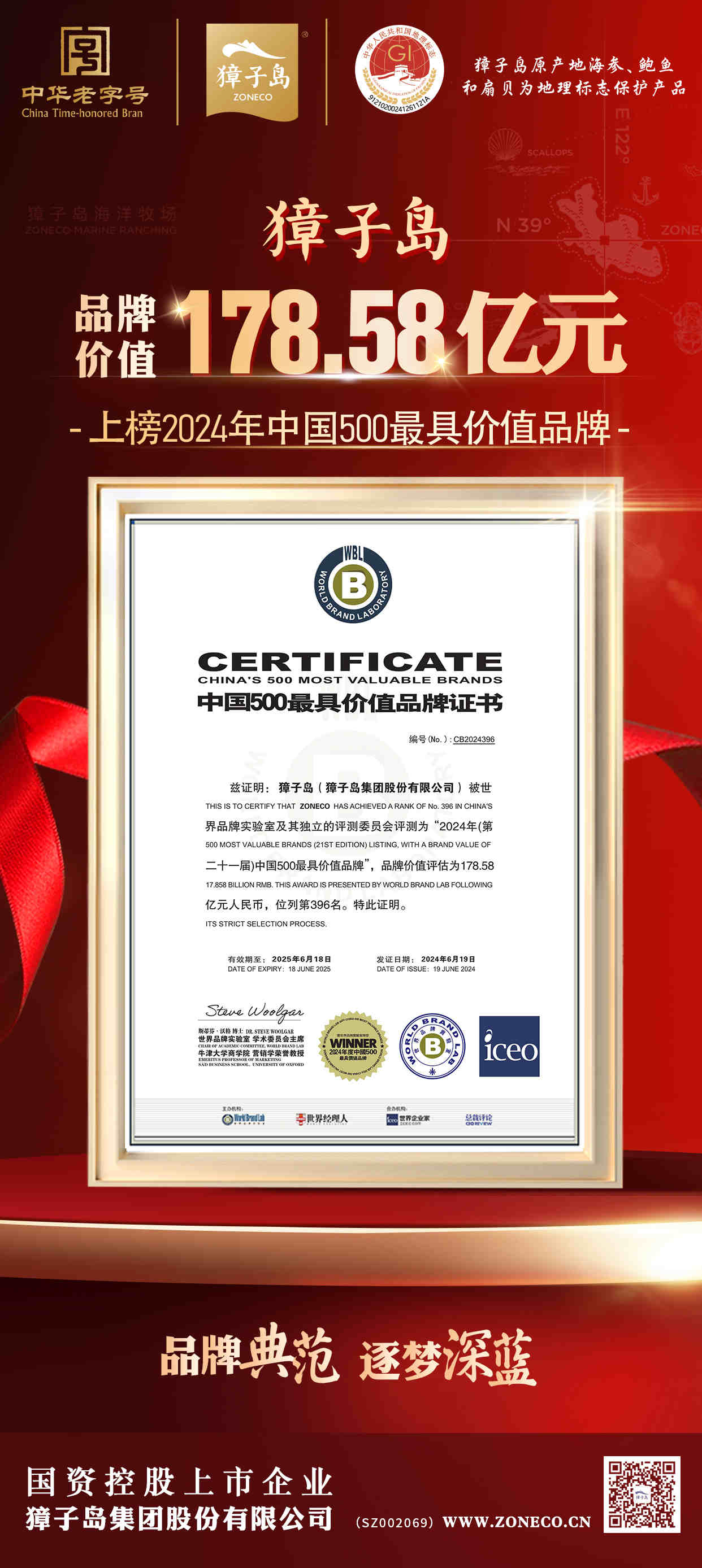 獐子島品牌價(jià)值178.58億元 入選“中國500最具價(jià)值品牌”