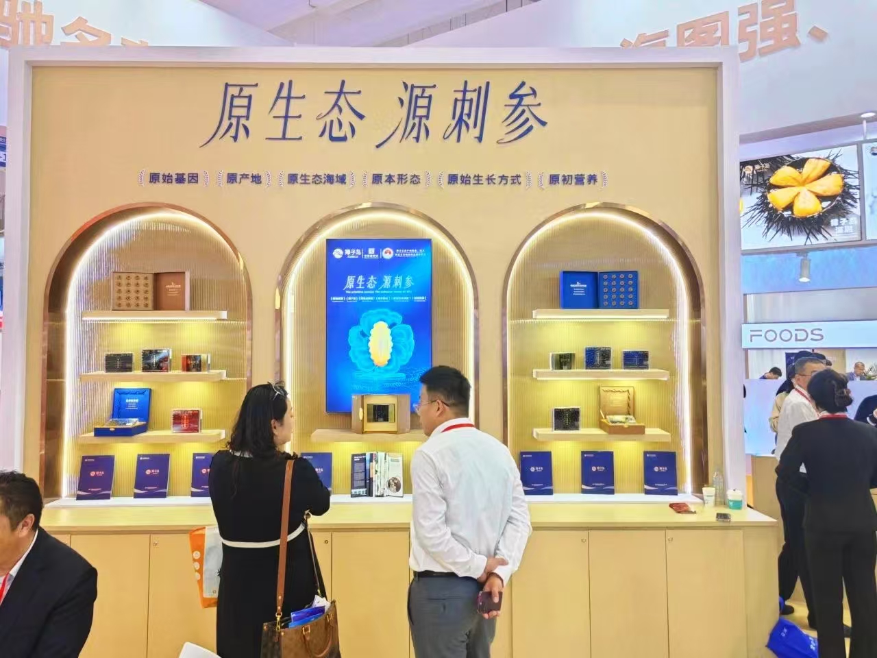 在獐子島集團特裝展位上,展示了來自北緯39°獐子島原產(chǎn)地的刺參、鮑魚、扇貝,以及大洋深海的三文魚、鱈魚、魷魚、鮐鲅、蝦等上百款養(yǎng)生食品、休閑食品、凍鮮食材和海鮮預制食品。特別是獐子島海參品類的全新升級尤為引人注目?!霸鷳B(tài) 源刺參”強化了其核心價值,并依托“原產(chǎn)地、原始基因、原生態(tài)海域、原始生長方式、原本形態(tài)、原初營養(yǎng)”的六原支撐體系,突顯了獐子島海參特有的自然稟賦和高端品質?,F(xiàn)場還特邀名廚演繹精湛廚藝,讓客商們體驗到獐子島海洋美食的獨特魅力和源自海洋原生態(tài)的營養(yǎng)美味。