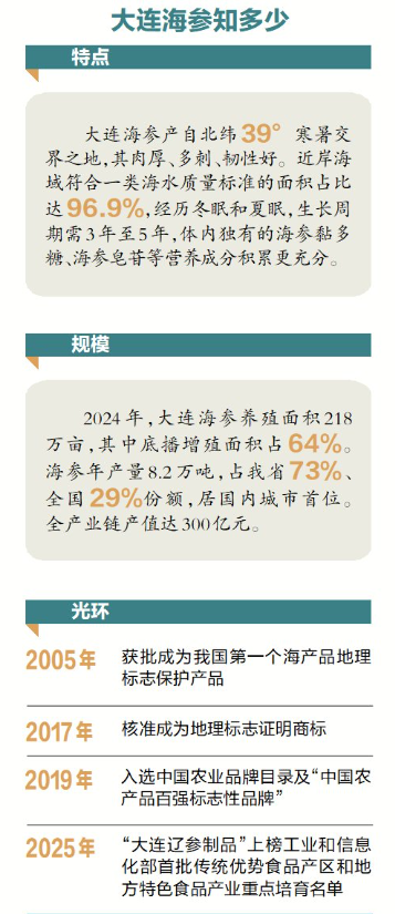 位于遼東半島的大連,是一座盛產(chǎn)海珍品的城市,海參、鮑魚、蝦夷扇貝等全國(guó)聞名,其中,海參最具代表性,現(xiàn)已形成海參育苗、養(yǎng)殖、加工、銷售全產(chǎn)業(yè)鏈,產(chǎn)值達(dá)300億元,帶動(dòng)就業(yè)超30萬人。