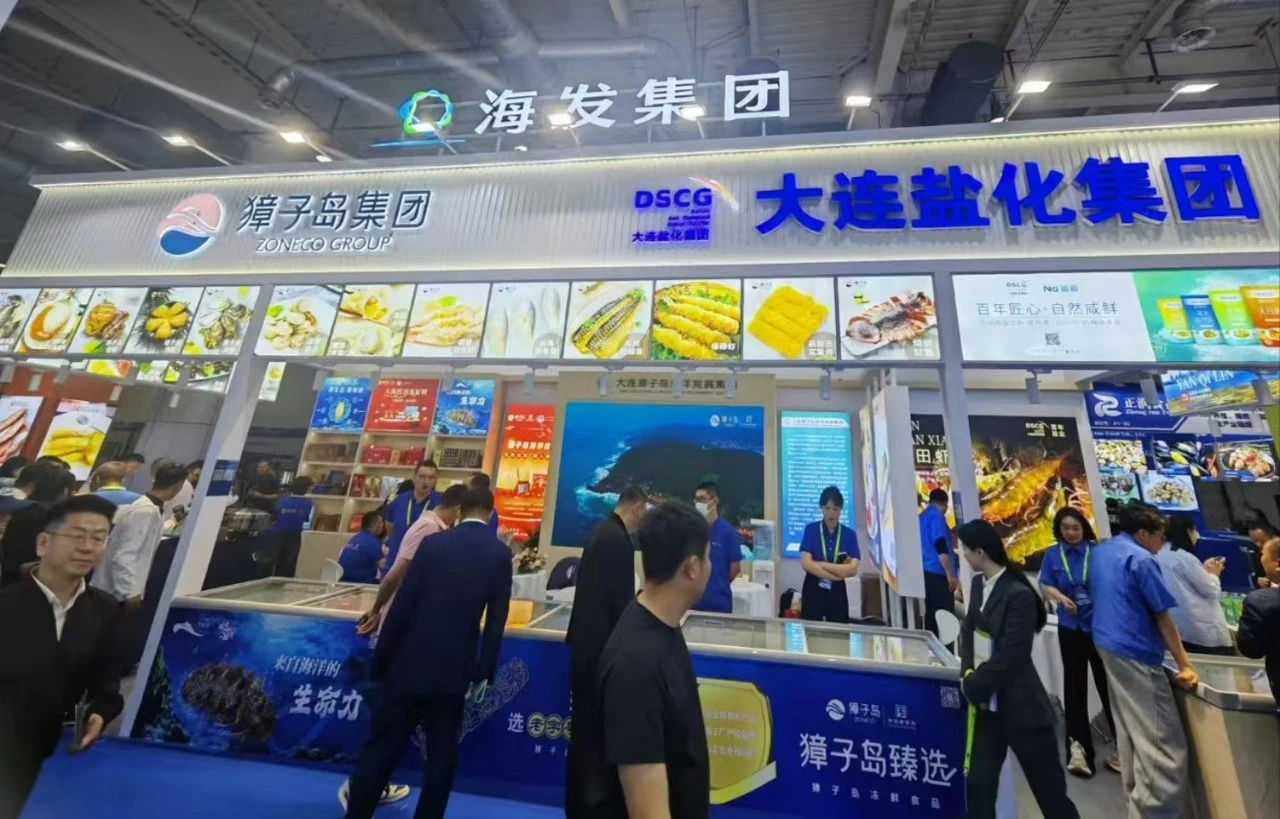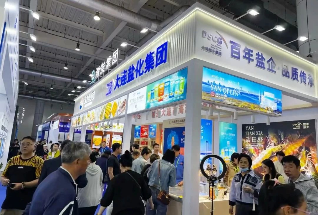 步入大連世界博覽廣場(chǎng),獐子島集團(tuán)與大連鹽化集團(tuán)作為大連獐子島海洋發(fā)展集團(tuán)的成員企業(yè),聯(lián)合打造了融合海洋文化與海洋產(chǎn)品的特裝展位,在眾多展位中脫穎而出,吸引了絡(luò)繹不絕的參觀者。獐子島集團(tuán)帶來了琳瑯滿目的源刺參、扇貝、鮑魚等海洋食品,而大連鹽化集團(tuán)的鹽田蝦與海鹽系列產(chǎn)品同樣備受關(guān)注。