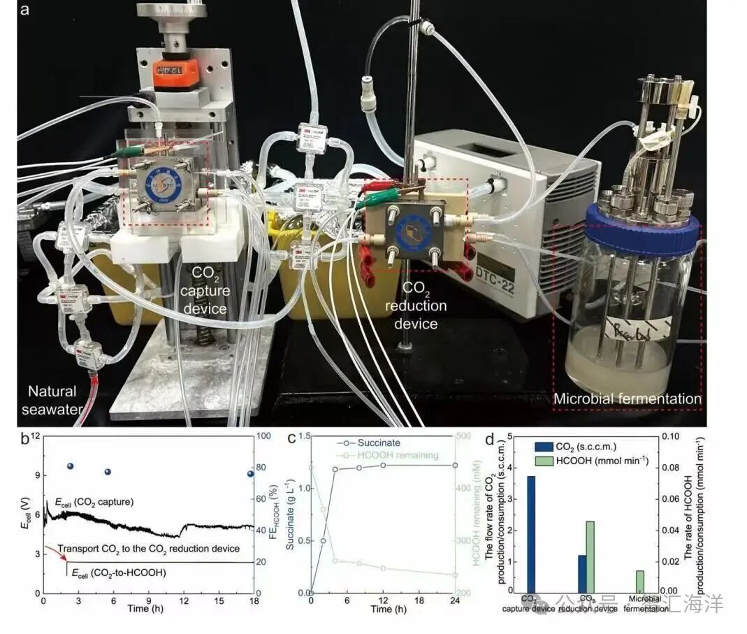 該項研究提出的“人工海洋碳循環(huán)系統(tǒng)”,構建了一個從“海水吸碳”到“材料與分子產出”的完整鏈條,采用“電催化+合成生物學”協(xié)同方案,首次打通了海水碳捕集與下游生物轉化的關鍵環(huán)節(jié),以可降解塑料單體為示范,形成可擴展的平臺路徑,為跨學科融合提供了新范例。